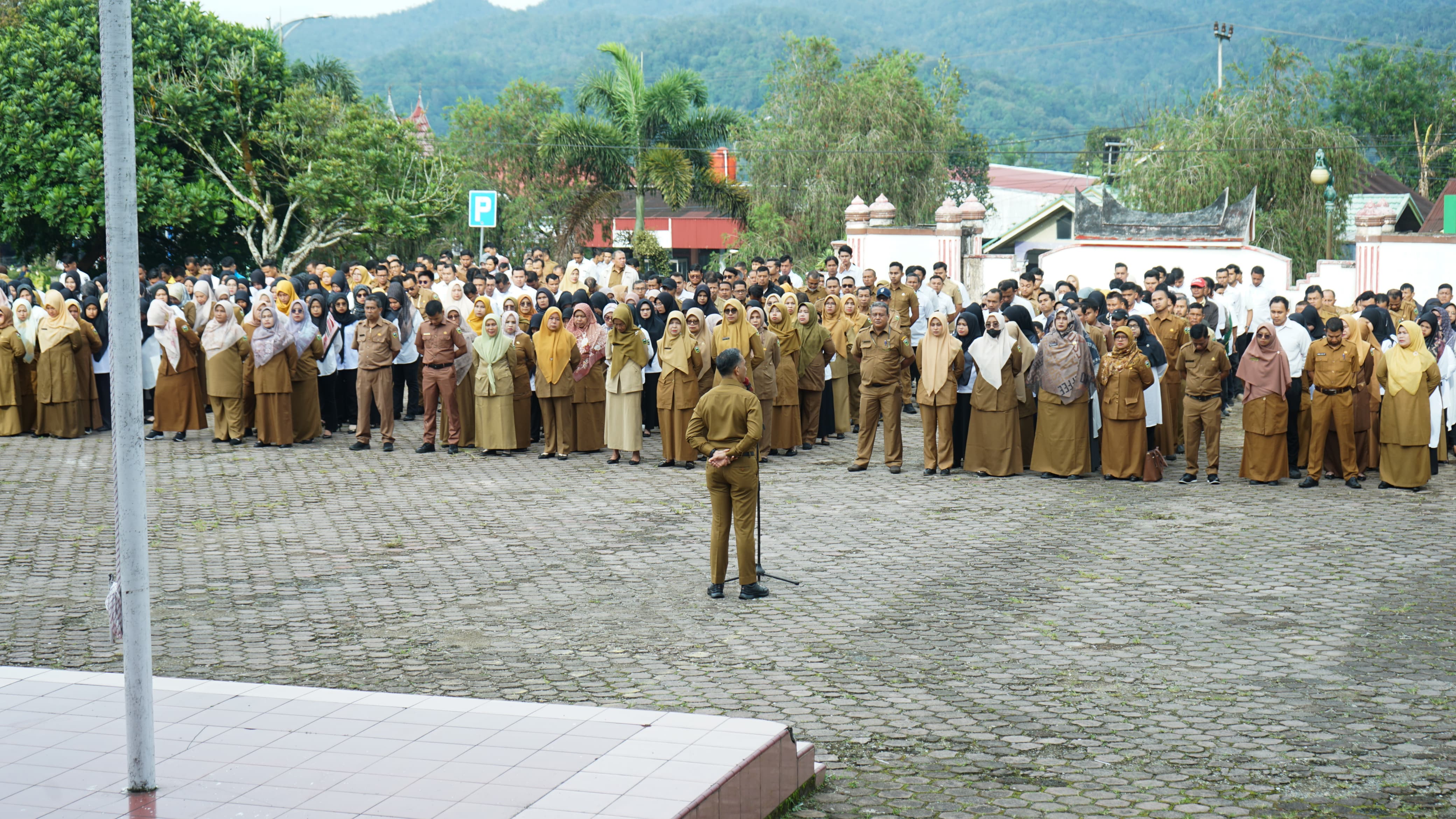 SOLOK, CARAPANDANG - Pemerintah Kabupaten Solok melaksanakan Apel Pagi yang digelar di Lapangan Kantor Bupati Solok, Senin (30/12/2024).