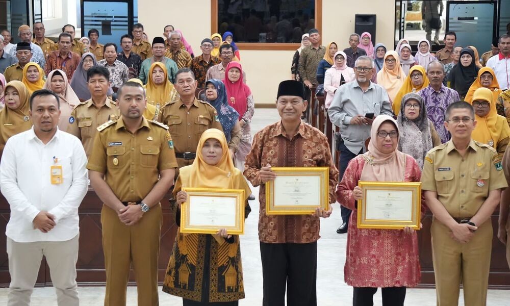SUMBAR, CARAPANDANG.COM - Pemerintah Provinsi Sumatera Barat memberikan piagam penghargaan kepada sejumlah Pegawai Negeri Sipil di lingkup Pemprov Sumbar yang memasuki masa purna bakti pada periode Januari hingga Juni 2023.