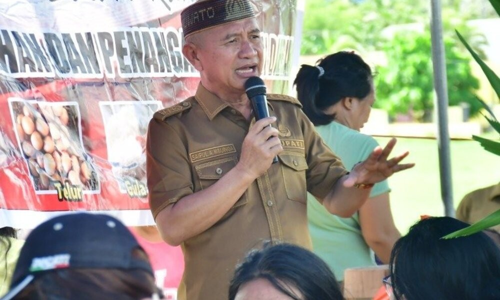 Pengakuan itu disampaikan bupati dihadapan warga ketika menghadiri operasi pasar murah di lapangan Desa Londoun, Selasa, (12/12/2023).