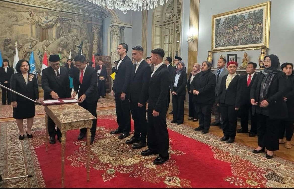 Emil, Joey, dan Dean, telah menjalani sumpah janji pewarganegaraan di Kedutaan Besar Republik Indonesia (KBRI) di Roma, Italia. Prosesi sumpah berlangsung pada Senin (10/3/2025), ketiganya juga sudah mempunyai Kartu Tanda Penduduk (KTP).