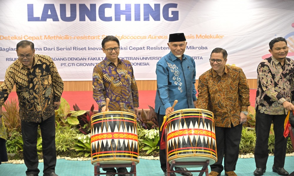 SUMBAR, CARAPANDANG.COM - Gubernur Sumatera Barat (Sumbar), Mahyeldi Ansharullah, mendampingi Menteri Kesehatan (Menkes) RI, Budi Gunadi Sadikin, dalam kunjungan kerja sehari di Kota Padang, Jumat (23/02/2024). Salah satu agenda penting yang diikuti ialah peluncuran Panel Deteksi Cepat Methicillin-restistant Staphylococcus aureus (MRSA) berbasis Molekuler di Rumah Sakit Umum Pusat (RSUP) Dr. M. Djamil Padang.