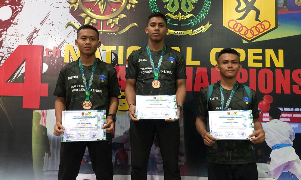 “Untuk di kategori atau kelas 60 kilogram sendiri, diisi Prada Rivaldo. Sedangkan di kumite kelas 84 kilogram, juara tiga diraih Pratu Hatno,” jelasnya.