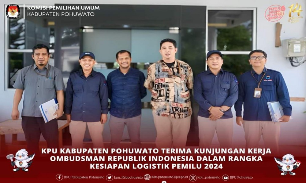 POHUWATO, CARAPANDANG - Komisi Pemilihan Umum (KPU) Kabupaten Pohuwato menerima kunjungan dari Tim Ombudsman Republik Indonesia. Kunjungan ini bertujuan untuk memastikan kesiapan dan distribusi logistik Pemilu 2024 di wilayah Kabupaten Pohuwato. Pada Selasa, (16/01/2024), di Kantor KPU Kabupaten Pohuwato.