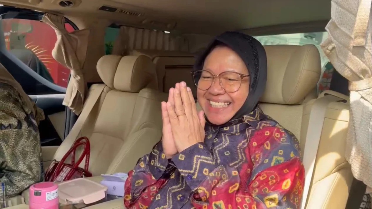 Risma hanya tersenyum mendengar pertanyaan wartawan lalu bergegas meninggalkan Kompleks Istana Kepresidenan, Jakarta dengan menaiki mobil dinasnya.