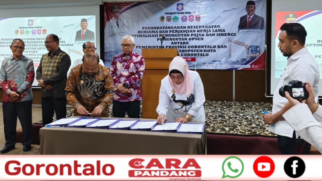 POHUWATO, CARAPANDANG - Penandatangan Kesepakatan Bersama dan Perjanjian Kerja Sama antara Pemerintah Provinsi dengan Pemerintah Kabupaten/Kota, turut dihadiri Plt Bupati Pohuwato, Suharsi Igirisa, Rabu, (20/11/2024).