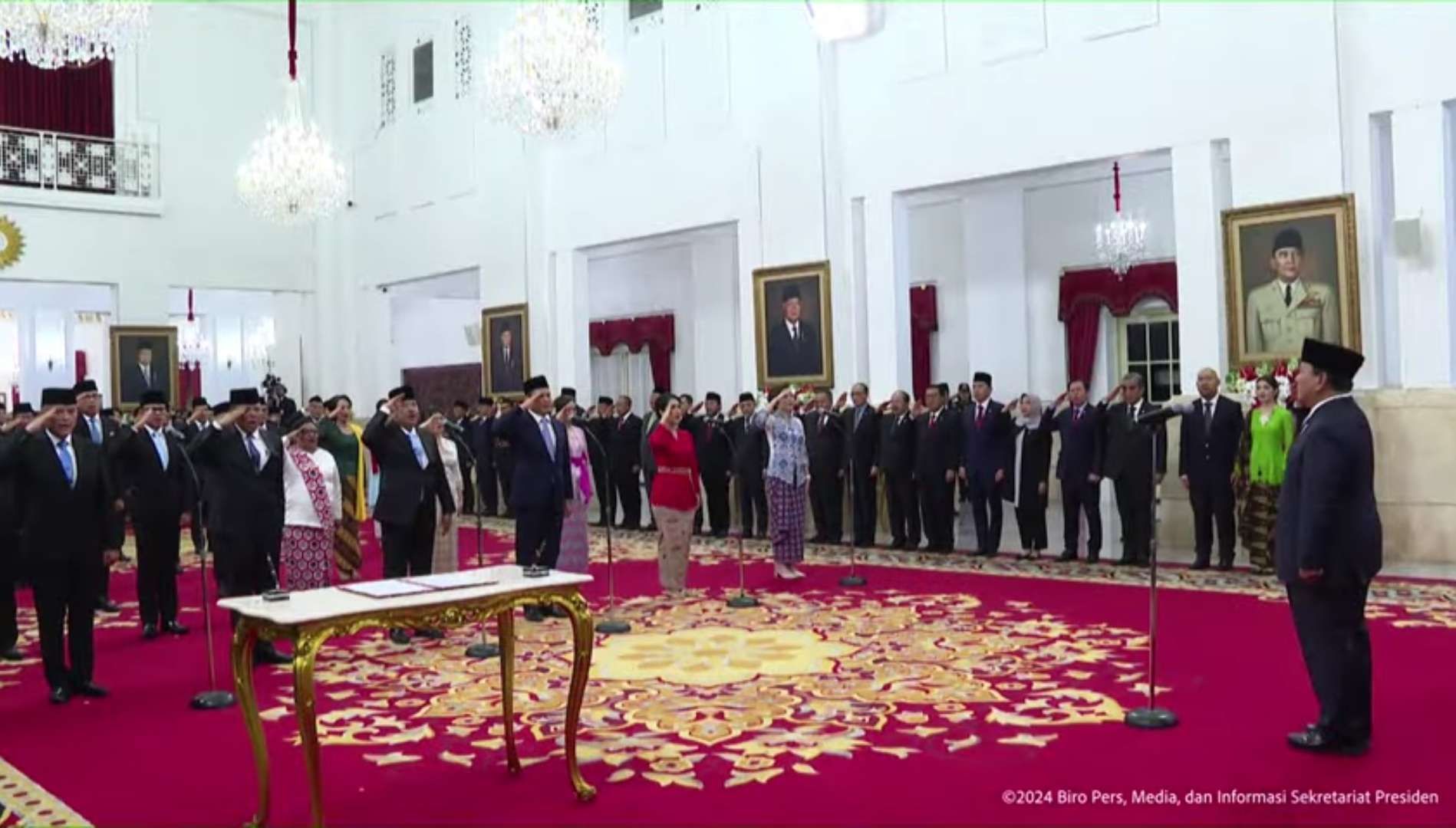 Dilanjutkan dengan pengambilan sumpah jabatan yang dipimpin Presiden Prabowo. Kemudian, dilanjutkan dengan penandatanganan berita acara pelantikan.