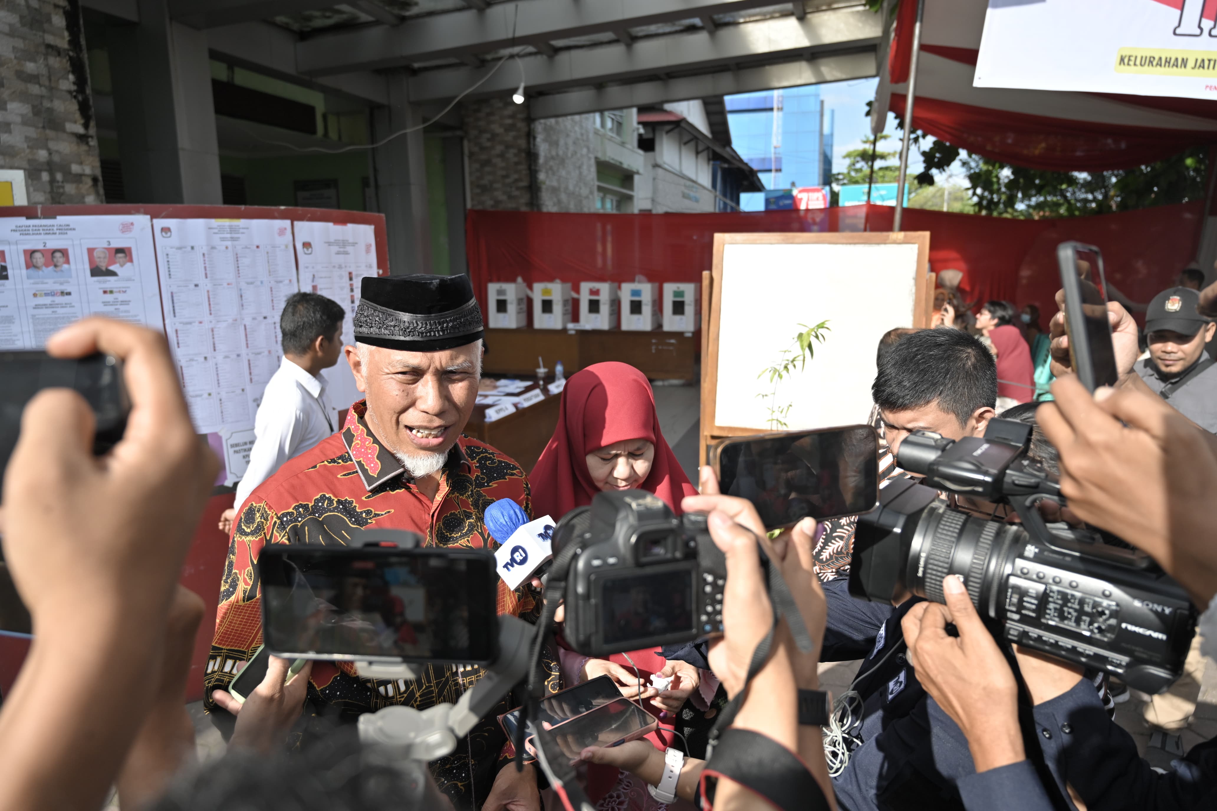SUMBAR, CARAPANDANG - Gubernur Sumatera Barat (Sumbar), Mahyeldi Ansharullah akan menyalurkan hak suaranya dalam Pemilihan Suara Ulang (PSU) calon anggota DPD RI asal Sumbar di TPS 12, Kelurahan Jati Baru, Kota Padang.