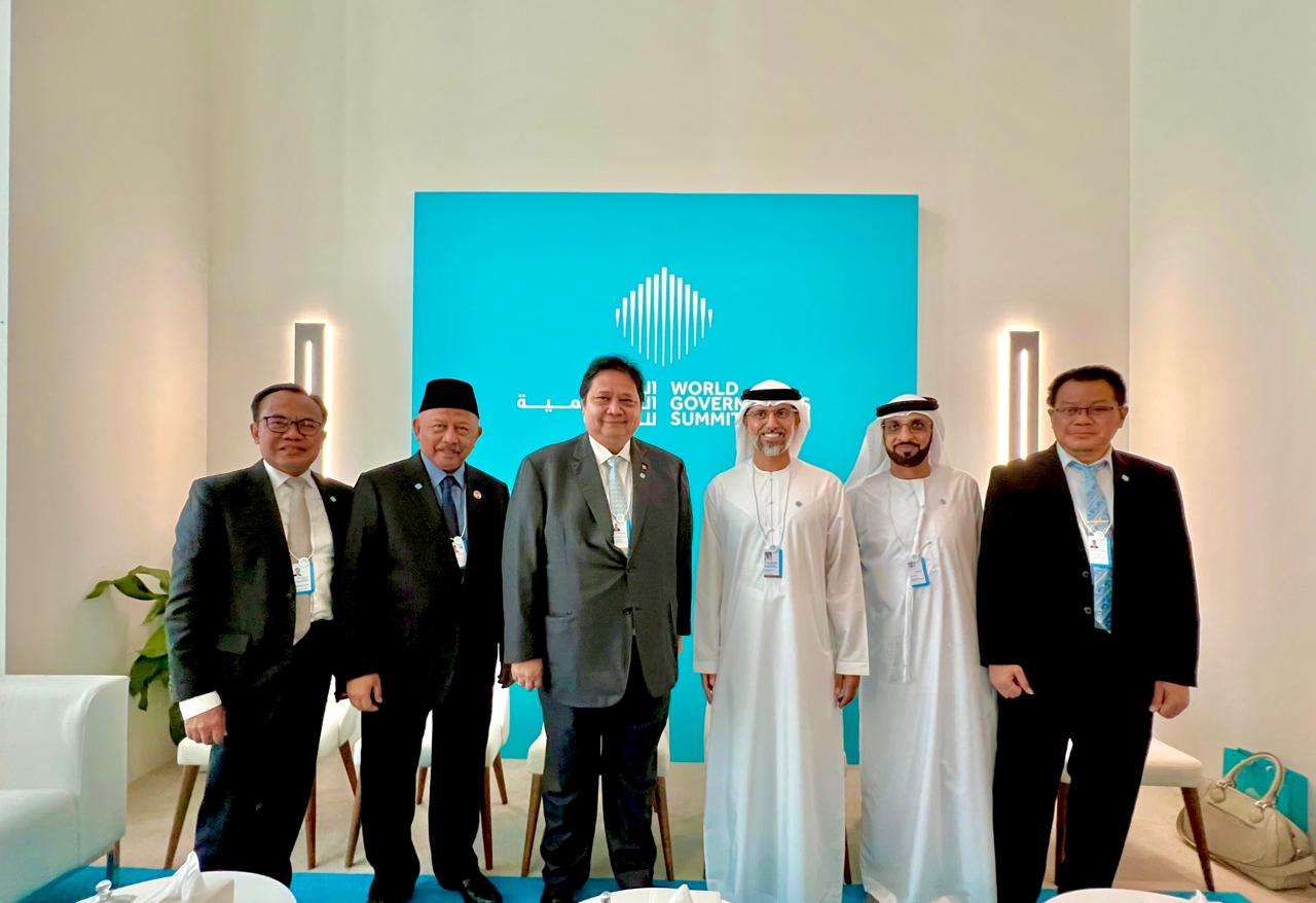 Memanfaatkan sela waktu di rangkaian World Governments Summit 2025 di Dubai, Menteri Koordinator Bidang Perekonomian Airlangga Hartarto melakukan pertemuan dengan Menteri Investasi Uni Emirat Arab (UEA) Mohamed Hassan Alsuwaidi pada Rabu (12/2).