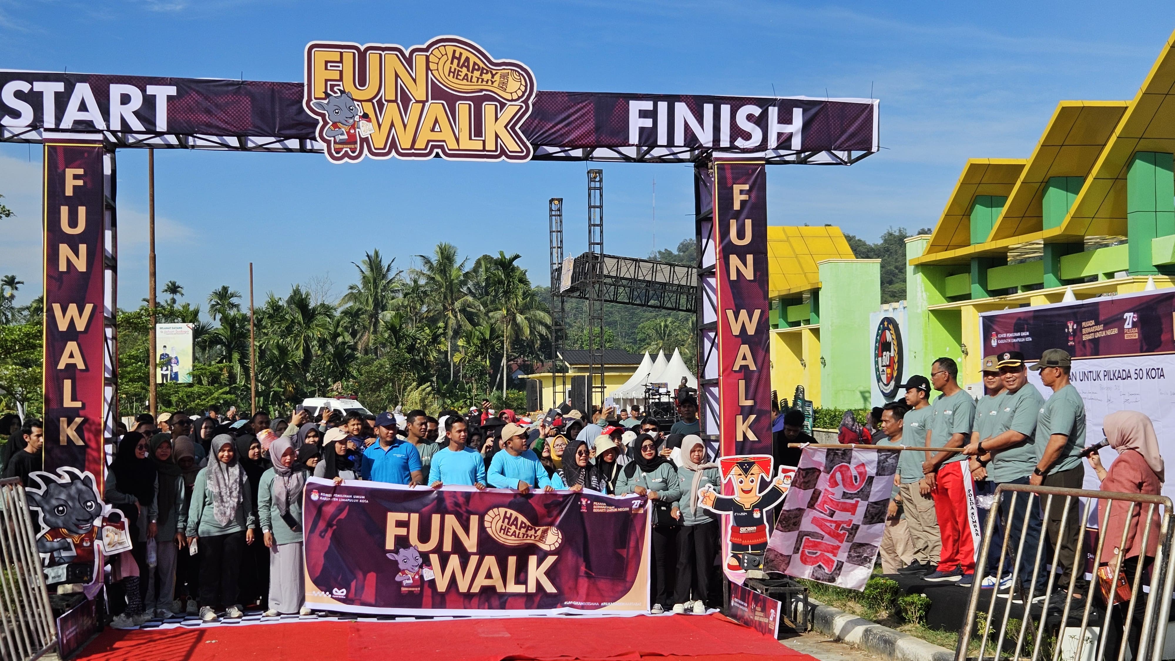 Dalam rangka menyosialisasikan pelaksanaan Pemilihan Kepala Daerah (Pilkada) serentak nasional 2024, Komisi Pemilihan Umum (KPU) Limapuluh Kota menggelar Fun Walk, Minggu pagi (27/10/2024) di RTH Mahkota Berlian Sarilamak