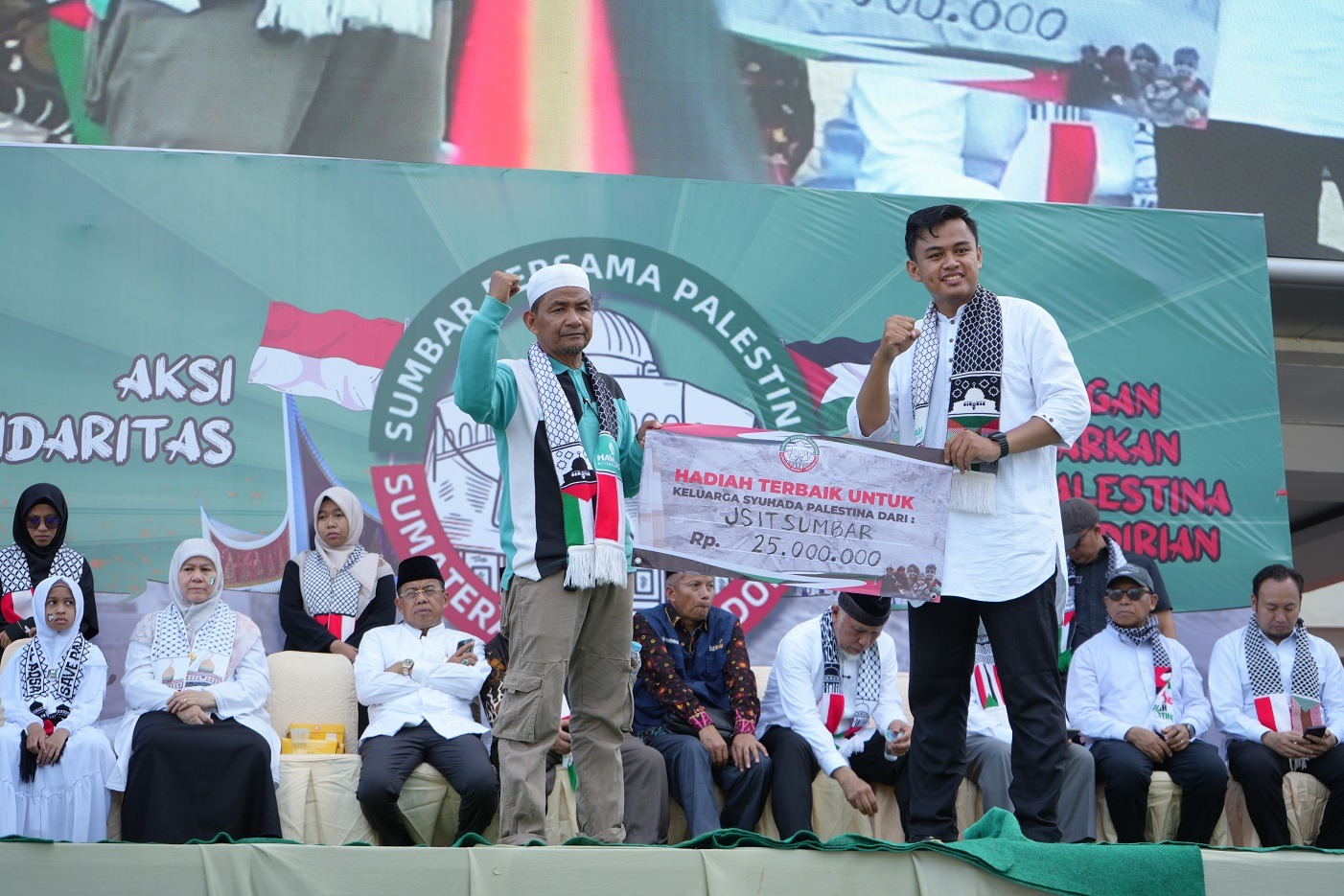 SUMBAR, CARAPANDANG - Gelombang dukungan untuk Palestina terus bergema di Sumatera Barat. Ribuan warga dari berbagai elemen masyarakat memadati halaman Kantor Gubernur Sumatera Barat untuk menyampaikan aspirasi dan menunjukkan solidaritas terhadap perjuangan rakyat Palestina. Aksi yang diperkirakan diikuti oleh sedikitnya 11 ribu peserta ini berlangsung damai dan khidmat.